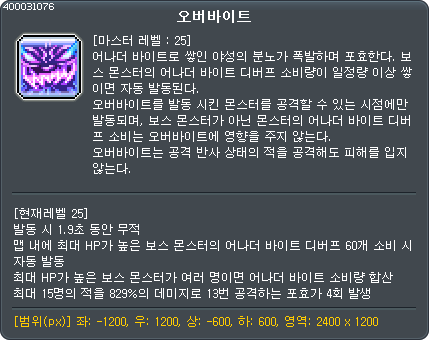 사용 시 어나더 바이트 30개를 보스에게 부여하며 10초간 무적입니다.