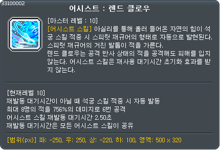 2.5초의 쿨타임이 존재하며 쿨타임 중에는 발동되지 않습니다.