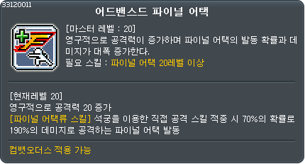 3차 스킬의 어시스트 : 팽 스냅 다음으로 발동됩니다.