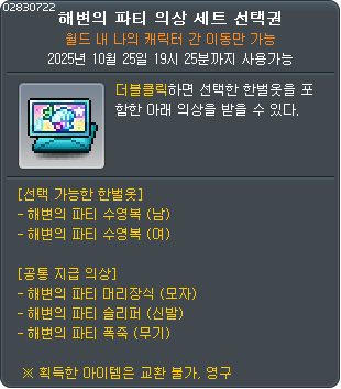 | 해변의 파티 의상 세트 선택권 4 코인 |