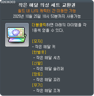 | 작은 해달 의상 세트 교환권 5 코인 |