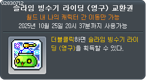 | 슬라임 빙수기 라이딩 (영구) 교환권 1 코인 |