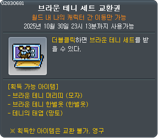 | 브라운 테니 세트 교환권 3 코인 |