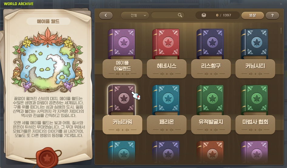 ESC를 눌러 바로 월드 아카이브를 이용 가능합니다.