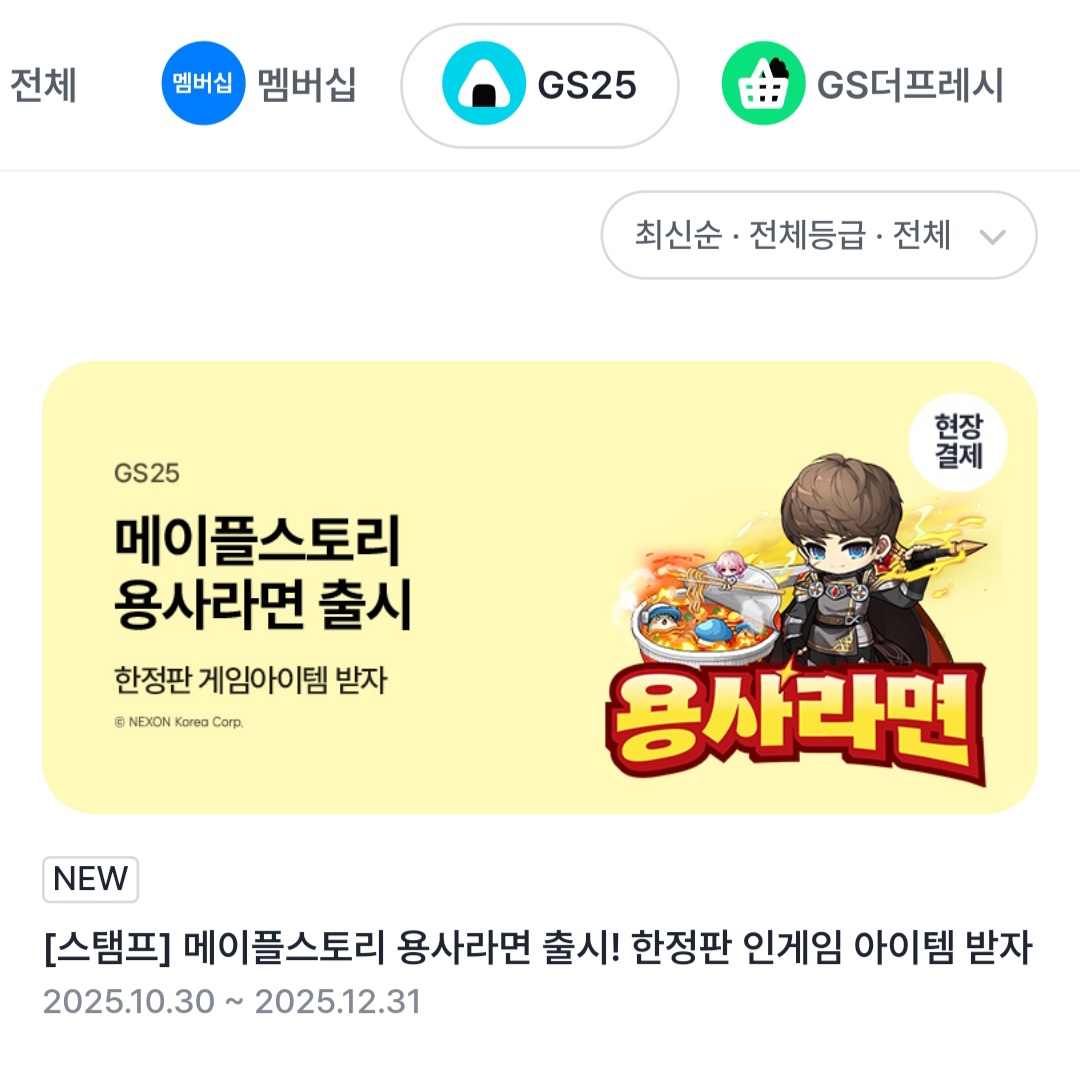 메이플스토리 x gs25 용사라면 콜라보 이벤트 정리입니다.