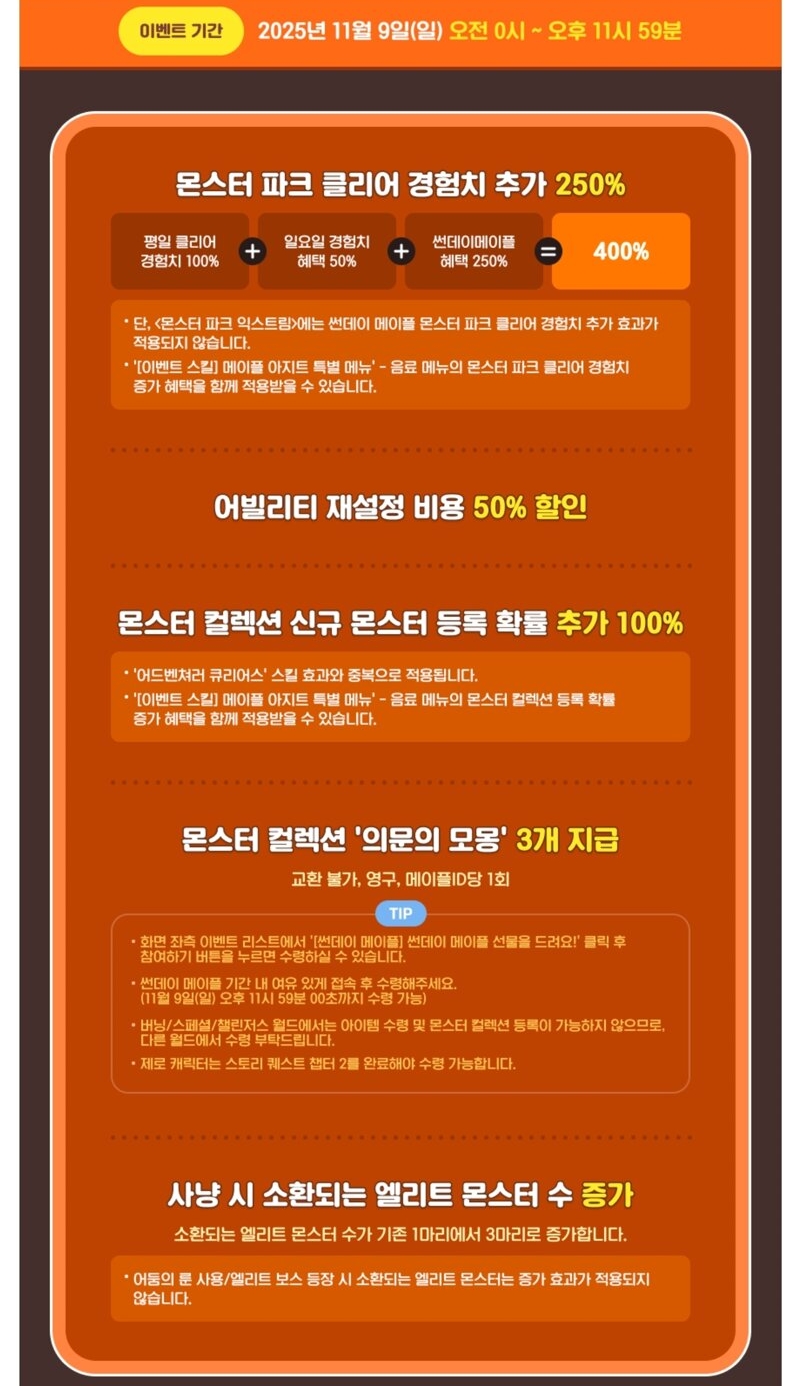 | 11월 16일 스페셜 썬데이 메이플 [샤이닝 스타포스] (2) | 2025.11.14 |