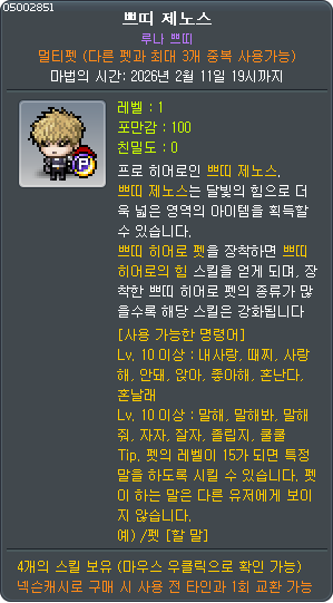 전용 펫장비 구매 경로 : 캐시샵 > 기능성 > 펫장비
