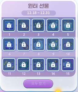 12월 18일 점검 후 '윈터 선물'을 수령 가능합니다.
