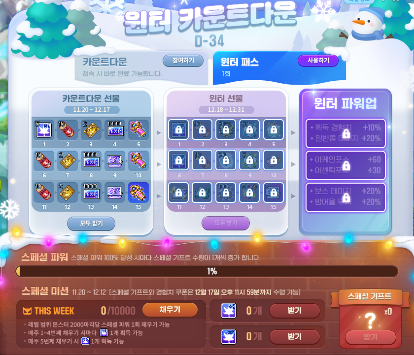 #윈터 패스를 사용하는 경우에도 정상적으로 윈터 파워업 스킬을 획득할 수 있습니다.