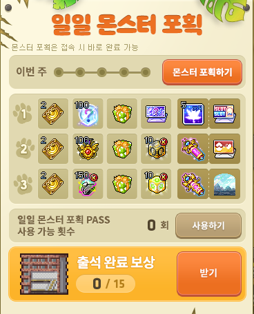 주 5회 출석이 가능하며, 이벤트 기간 15번까지 출석이 가능합니다.