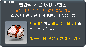 | 1 | VIP 사우나 이용권 | 2 | 2025년 12월 17일(수) 오후 11시 59분 |