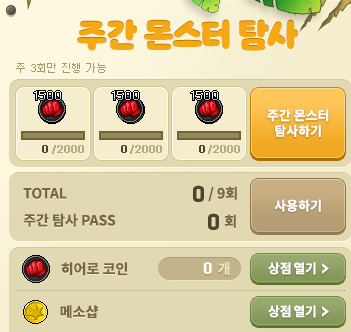 지난주 기준으로 완료하지 못한 몬스터 탐사만큼