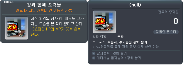 | 킹 엔진 스킬 | 킹과 함께 오락을 | 주문의 흔적 30,000개 |