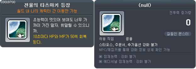 | 초능력 스킬 | 전율의 타츠마키와 함께 라이딩 (영구) 교환권 | 1억 메소 주머니 150개 |