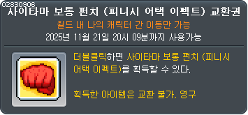 사이타마 보통 펀치 (피니시 어택 이펙트) 교환권 | 1억 메소 주머니 500개 |