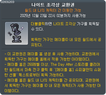 | 6 | 나이트 조각상 교환권(가구) | 1 |