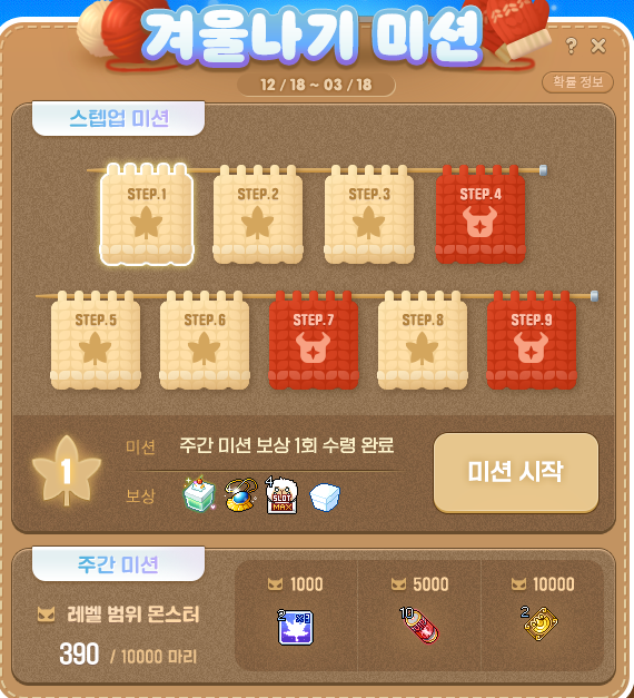 | 미션 단계 | 미션 내용 | 미션 보상 | 보상 수량 |