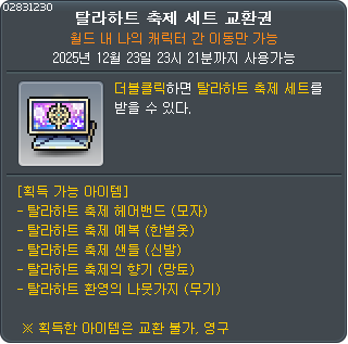 | 38 | 탈라하트 축제 세트 교환권 | 1 |