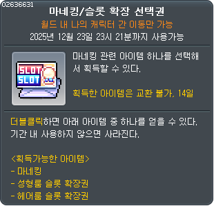 | 26 | 선택 심볼 교환권 (선택 아케인심볼 5개 또는 선택 어센틱심볼 2개 중 택 1) |