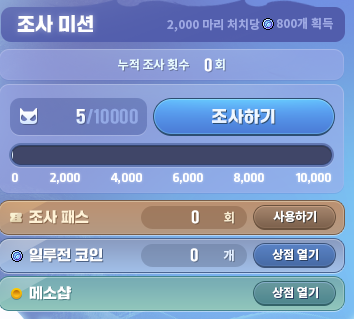 지난주 기준 조사하지 못한 횟수만큼 조사 패스를 사용해 조사를 진행할 수 있으며
