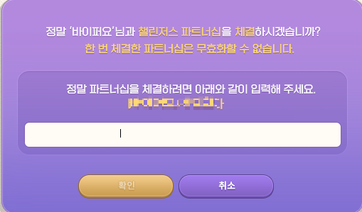 #한 번 맺어진 파트너십은 이벤트가 종료될 때까지 무효화할 수 없습니다.