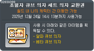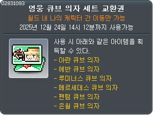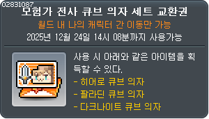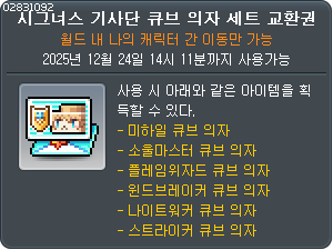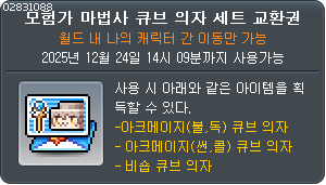 ![]() 모험가 궁수 큐브 의자 세트 교환권 |