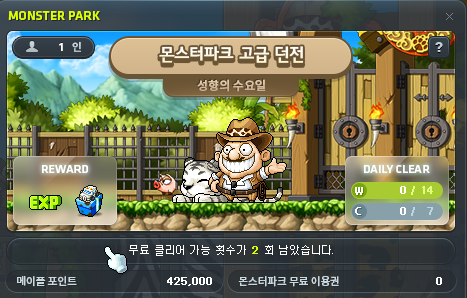 무료 클리어 가능 횟수 1회 > 2회 증가 (본캐 2번 가능)