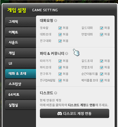 설정 > 대화 & 초대 > 디스코드 계정 연동