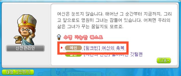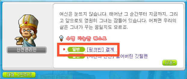 핑크빈-결계 퀘스트를 받은 후 대화 몇번 해주면