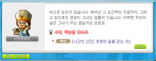 연출 봐주고 퀘스트 NPC-신전관리인에게 퀘스트 시작해줍니다.