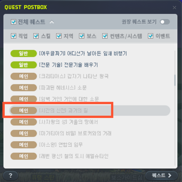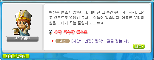 시간의 신전으로 이동 후 퀘스트 받아줍니다.