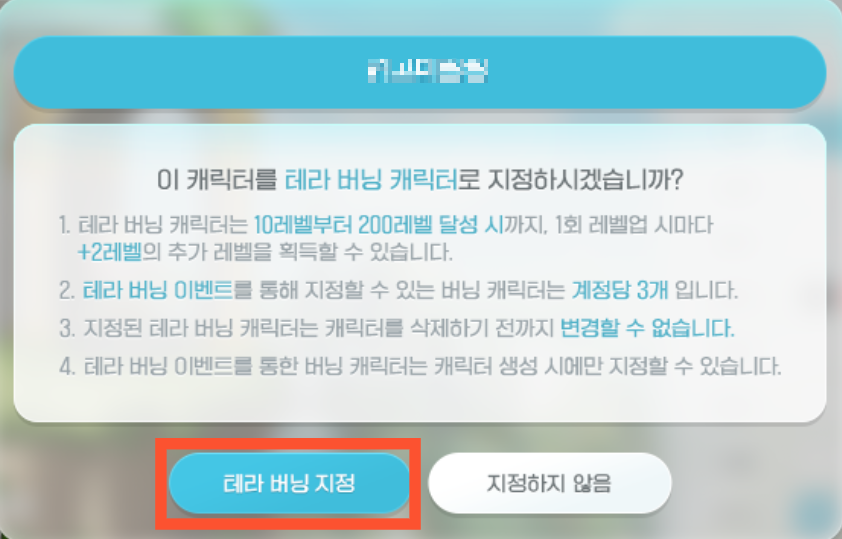 테라 버닝 캐릭터로 지정해 줍니다.