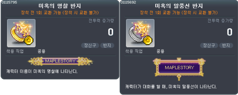 ![]() 미혹의 명찰/말풍선 반지 교환권 |