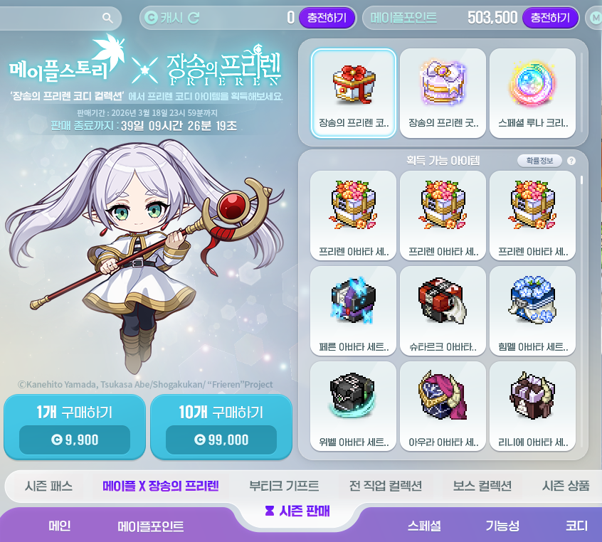 캐시샵 > 시즌 판매 > 메이플x장송의 프리렌 > 코디 컬렉션