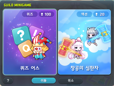 NPC-파티마스터 삐에르에게 말을 걸어 길드원과 미니게임을 즐길 수 있습니다.