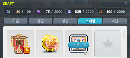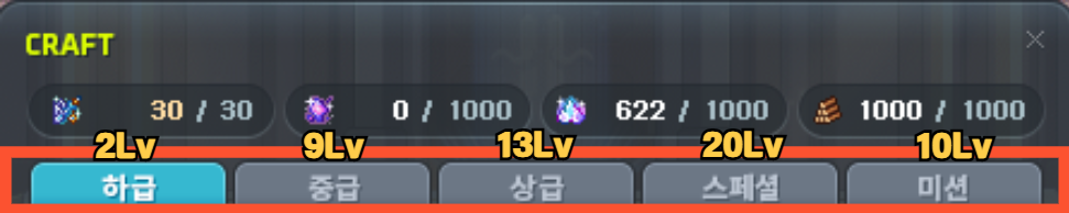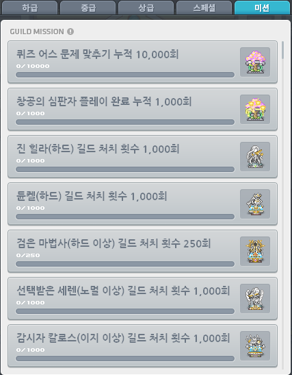 | 하급 | 중급 | 상급 | 스페셜 | 미션 |