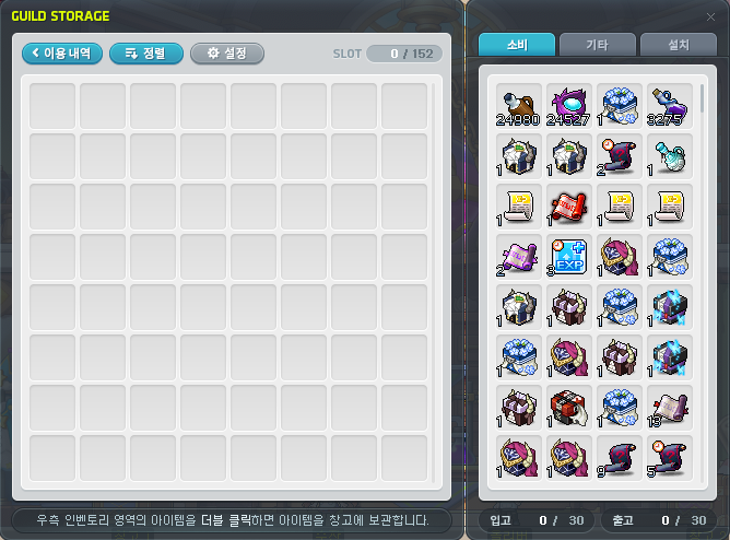 길드 공용 창고가 있습니다.