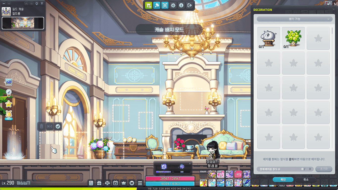 배치기능을 통해 장식을 배치 가능합니다.