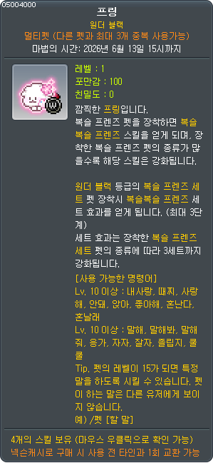 | 메이플스토리 장송의 프리렌 자석펫 정리 (0) | 2026.02.07 |