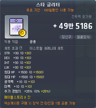 #아이템 변경사항 : 올스탯 +35, 공격력/마력 +15, 경험치 +25%, 최대 HP/최대 MP +1750