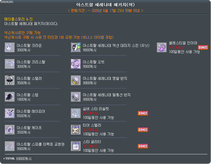 #패키지 구성품인 4개 아이템은 100일 추가 능력치(기간) 제공