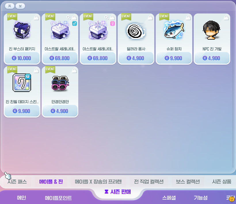 캐시샵 > 시즌 판매 > 메이플 & 진