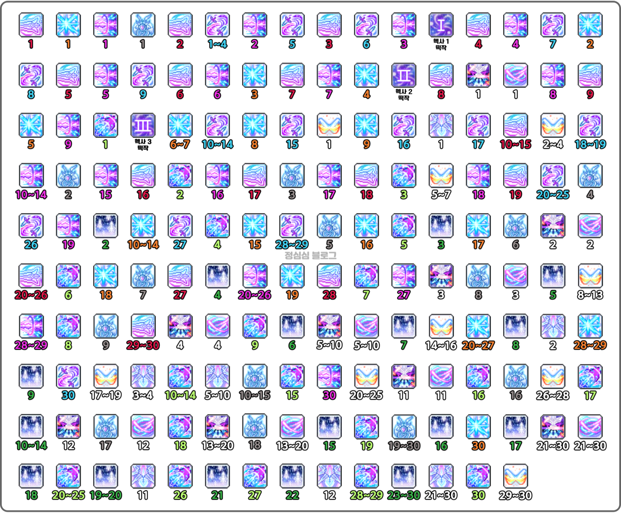※전투력 1,000만~2,000만 사이를 기준으로 하며 6차 스킬 진행 순서를 정리한 것입니다.