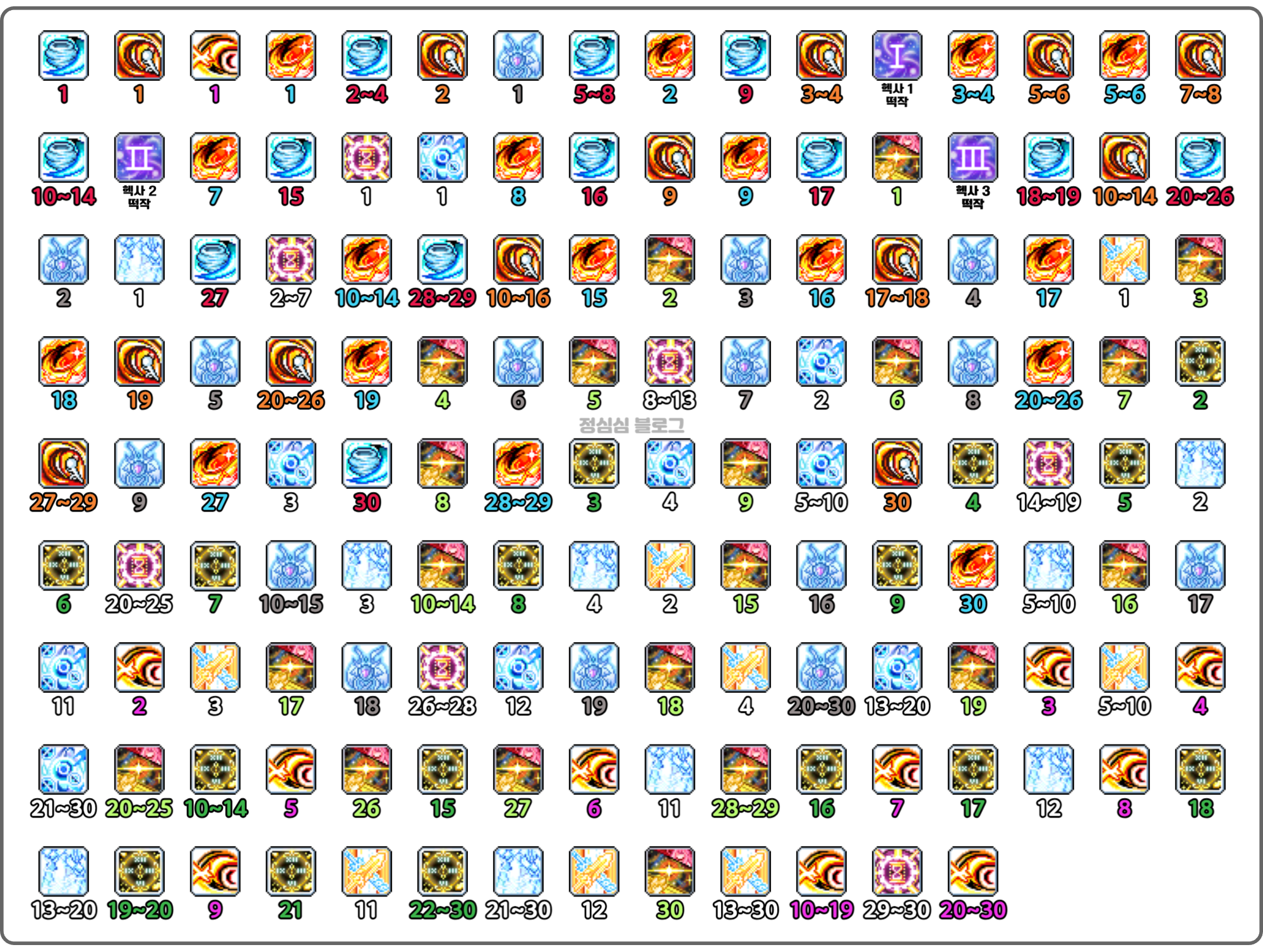 | 묶음 스킬의 첫 번째 스킬이 강화 순서 대표 이미지입니다. | |||