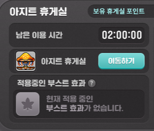 아지트 휴게실 이동하기를 누르면 휴게실로 이동 가능합니다.