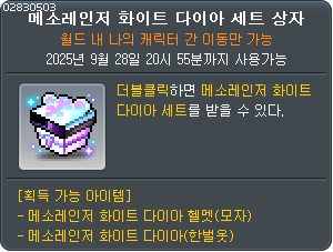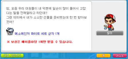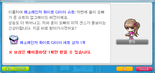 메소레인저 NPC 1명에게 말을 걸면 보상을 수령 수 있습니다.